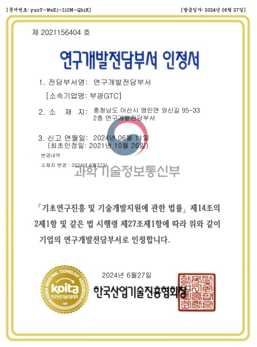 연구개발전담부서 인정서