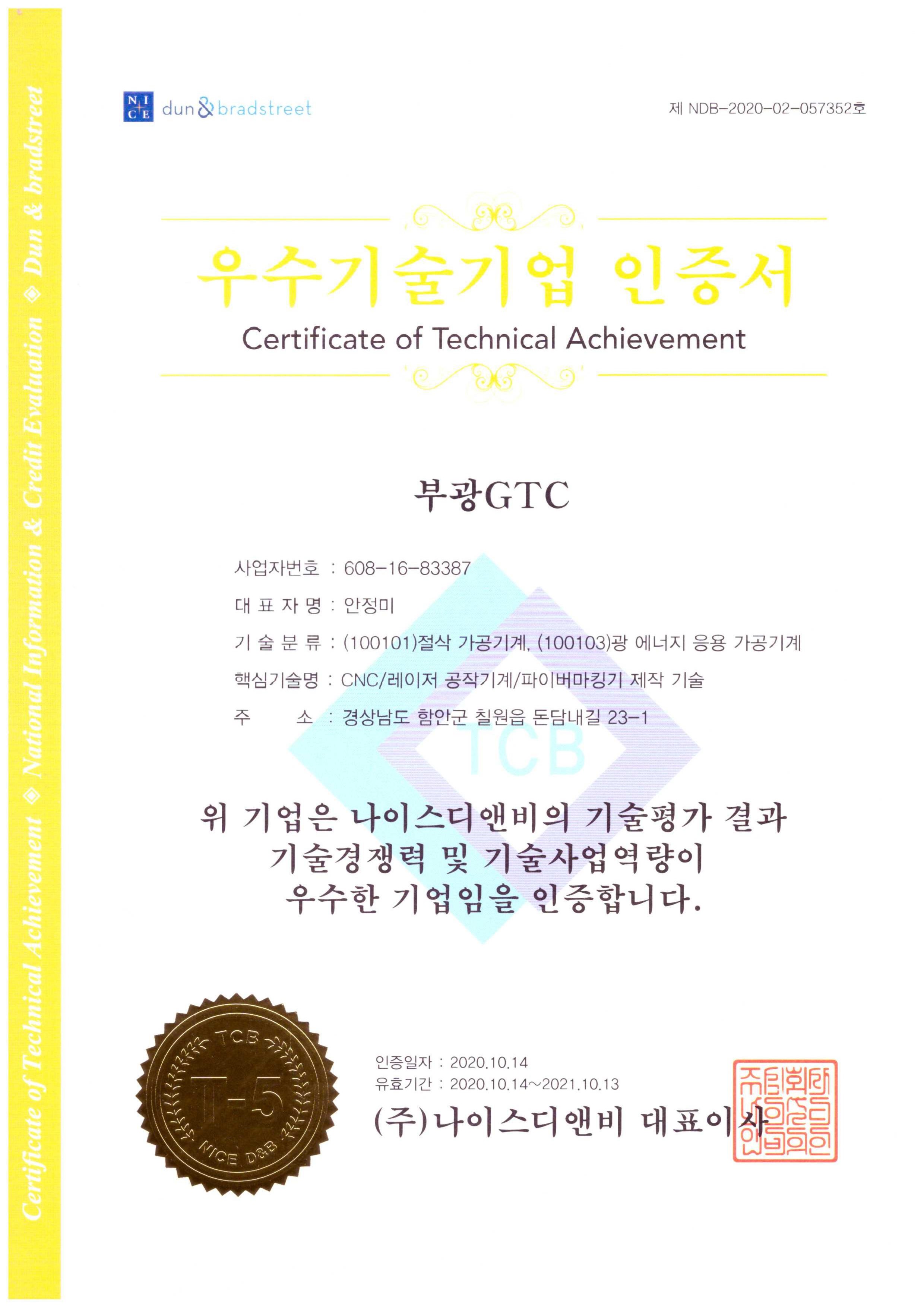 우수기술기업 인증서