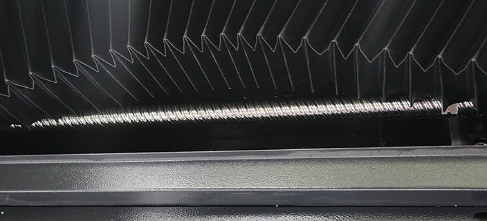 레이저 헤드가 이동할 때 밀리지 않도록 강구와 스크류 표면이 맞물리며 잡아주기 때문에 보다 정확하고 정밀한 가공이 가능하며, 늘어지거나 끊김 없이 오랫동안 사용할 수 있습니다.