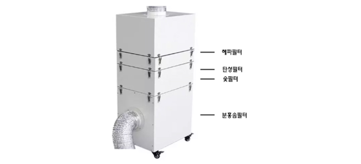 총 4개의 필터로 연기 속 유해물질을 걸러내서